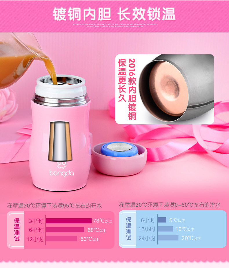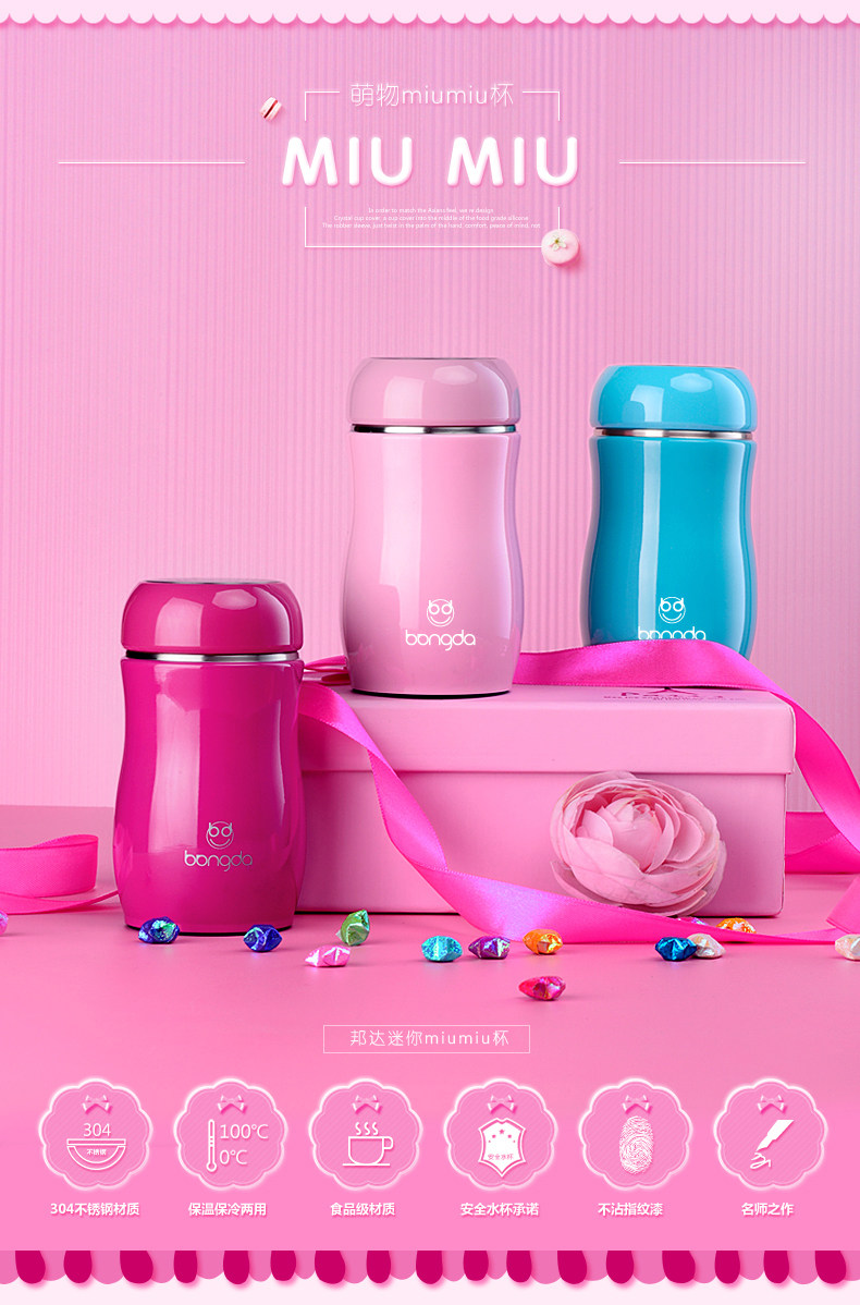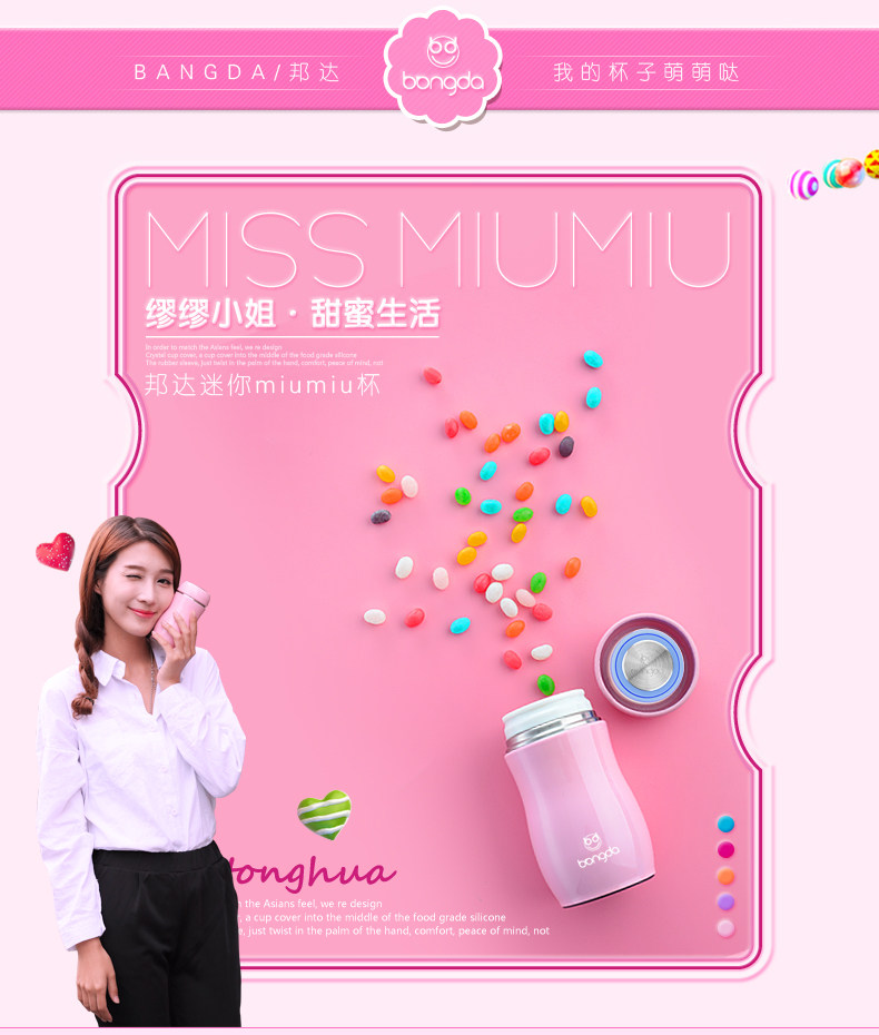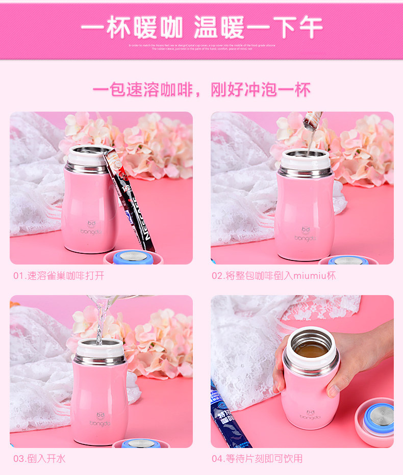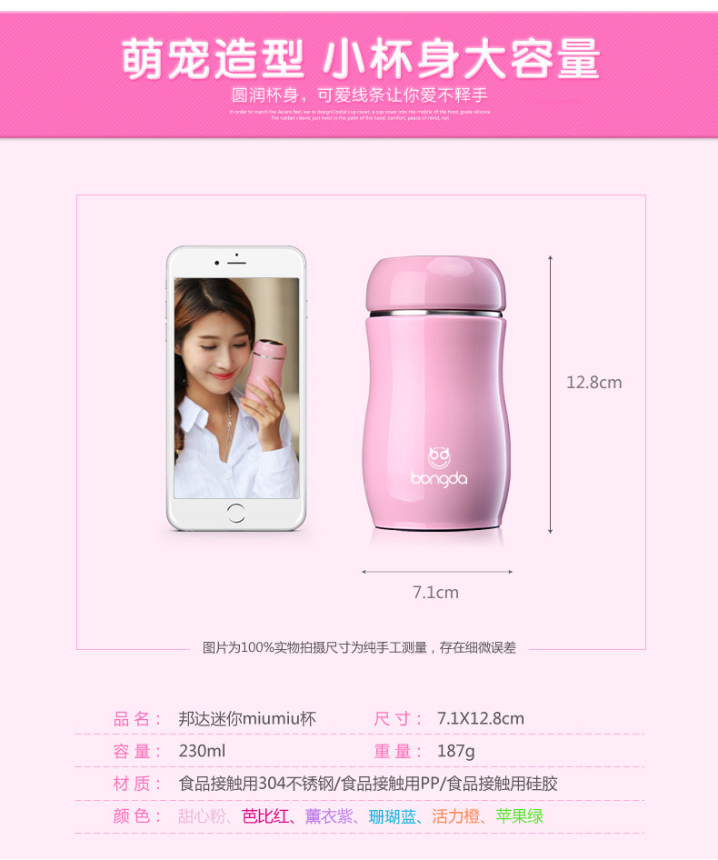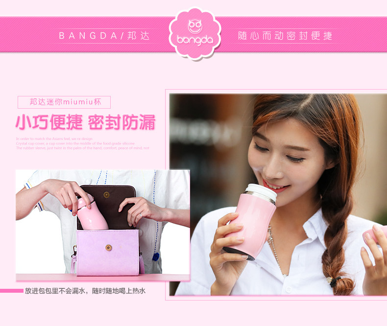邦达保温杯女男学生儿童不锈钢创意便携迷你水杯子可爱茶杯
