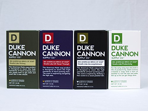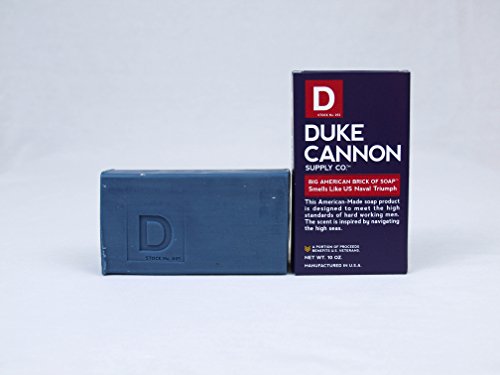 -. Binding : Health and Beauty -. Brand : Duke Cannon -. Color : Navy Blue -. EAN : 0854410004079 -. Feature : Aquamarine Fragrance Smells Like Naval Triumph / Scent Meets The High Standards Of Hard Working Men / Lasts Three Times Longer Than Traditional Bar Soaps / Why Buy Dainty Bar Soap When You Can Buy A Manly Brick? / A Portion Of Proceeds Benefits U.S. Veterans! -. IsAdultProduct : 0 -. Label : Duke Cannon Supply Company -. Manufacturer : Duke Cannon Supply Company -. Model : Naval Triumph -. MPN : 0 -. NumberOfItems : 1 -. PackageQuantity : 1 -. PartNumber : 0 -. ProductGroup : Beauty -. ProductTypeName : BEAUTY -. PublicationDate : 2013-05-24 -. Publisher : Duke Cannon Supply Company -. ReleaseDate : 2013-05-25 -. Studio : Duke Cannon Supply Company -. Title : Duke Cannon Men's Bar Soap - 10oz. Big American Brick Of Soap By Duke Cannon - Naval Triumph -. UPC : 798813045263