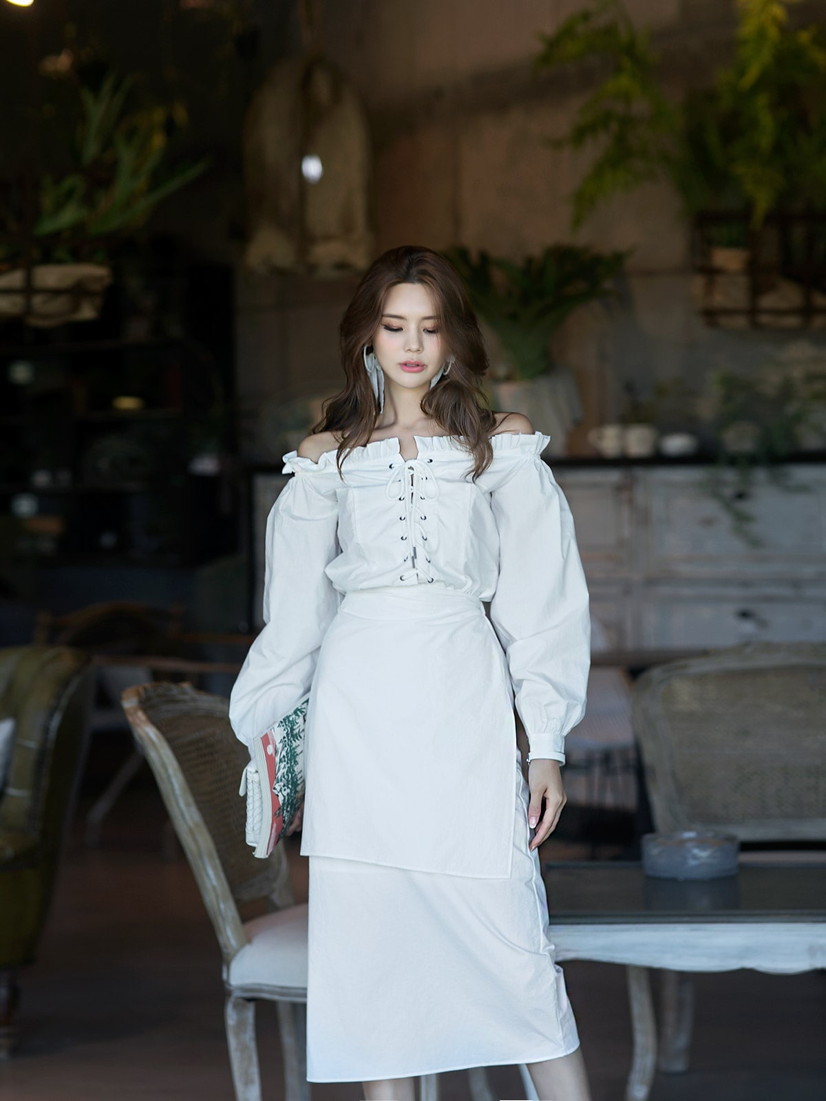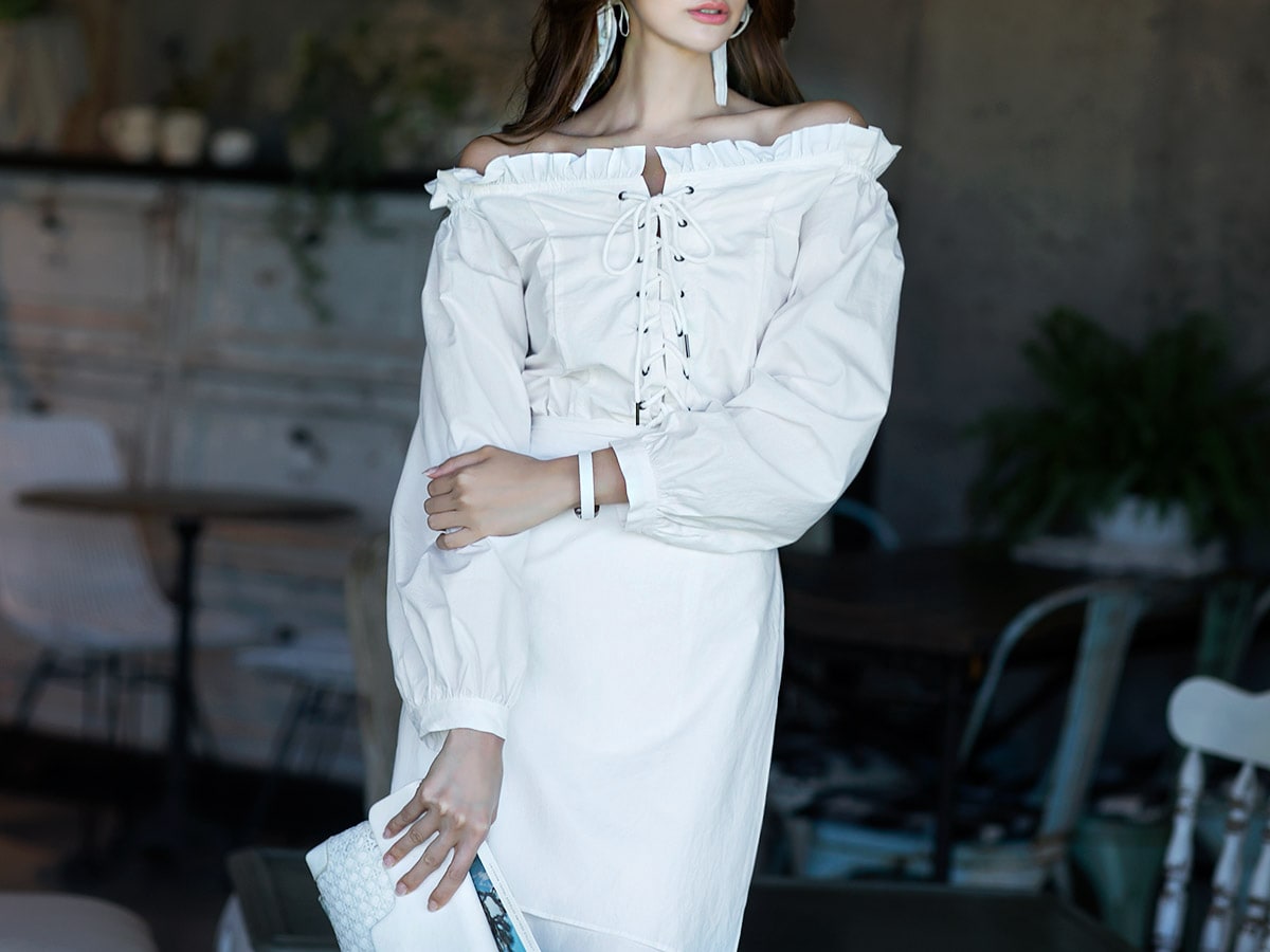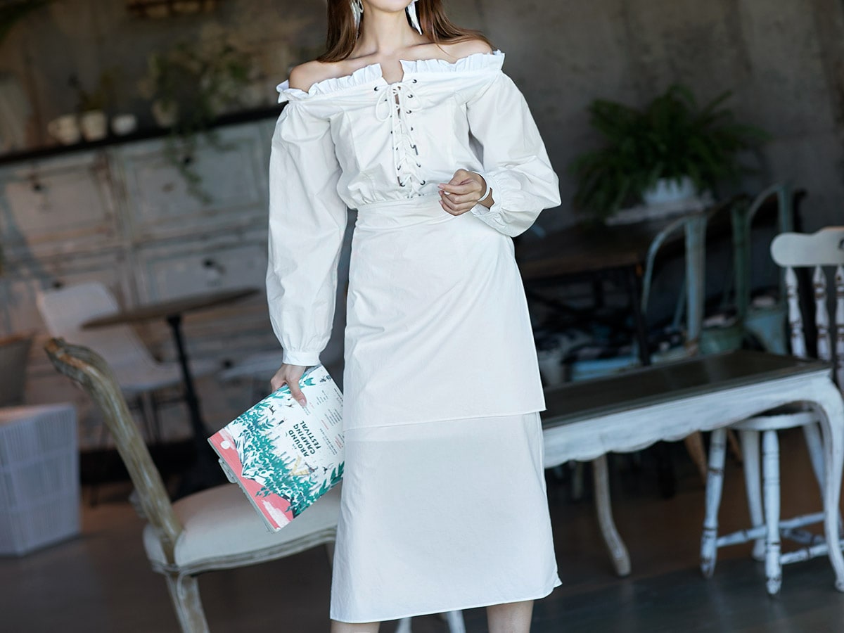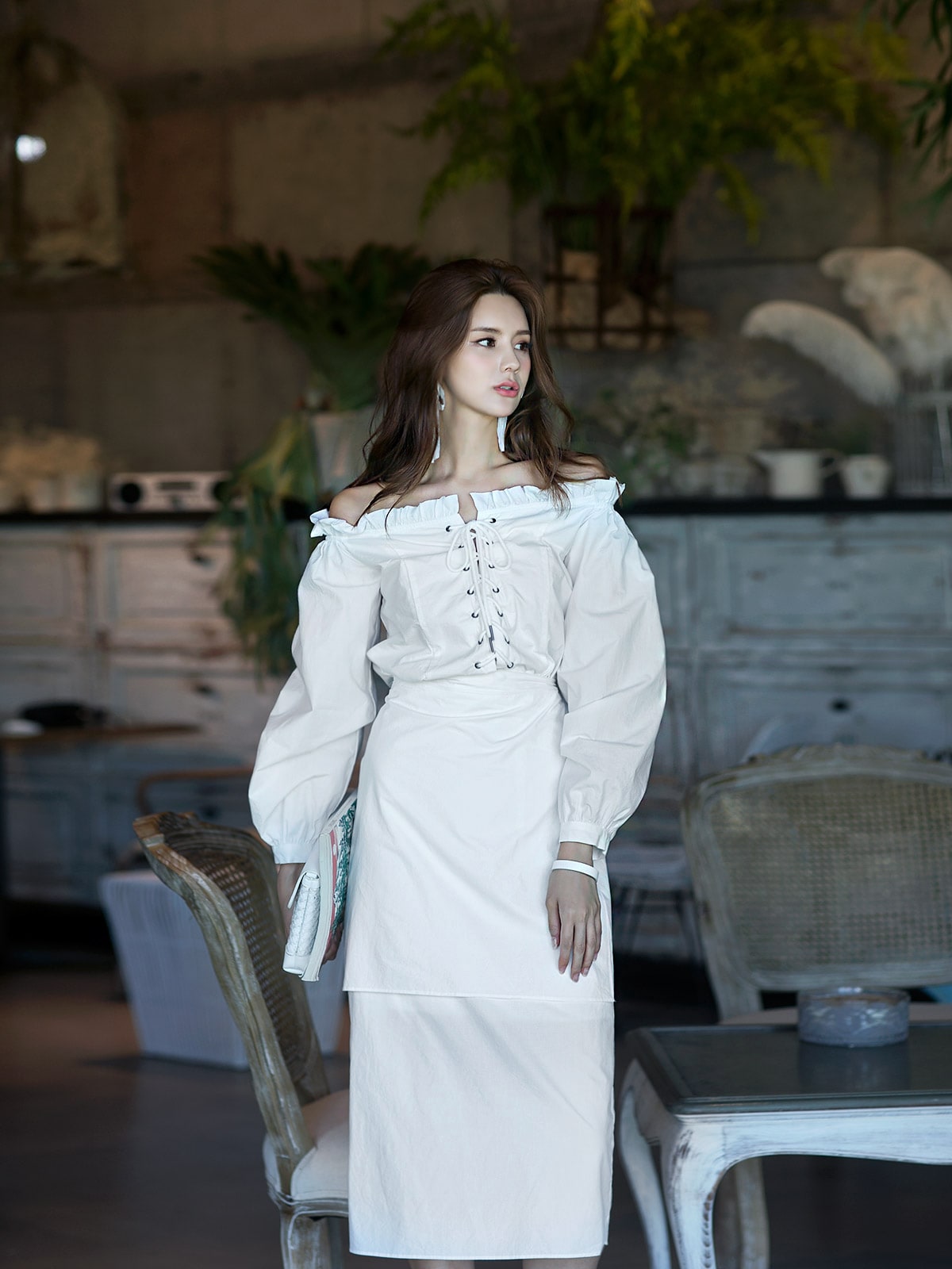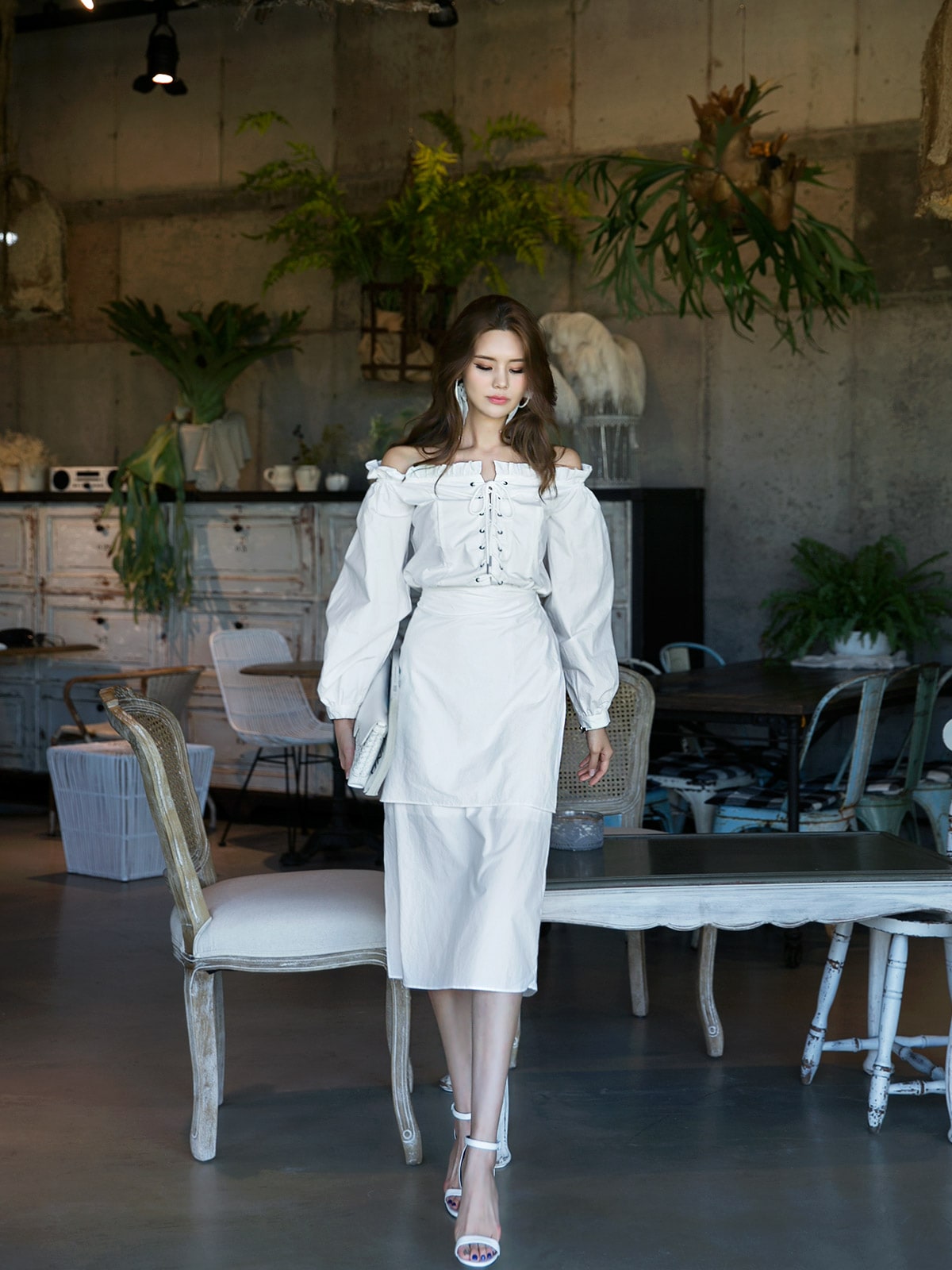 B2254 더블 아일렛 오프숄더 블라우스 Ivory
