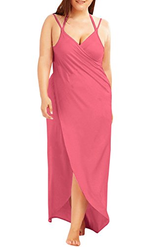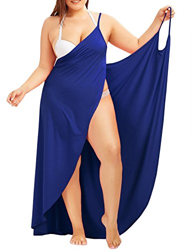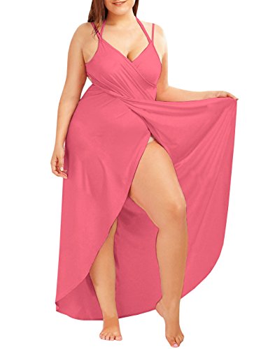 -The plus size cover up dress features spaghetti straps, wrap around and floor length