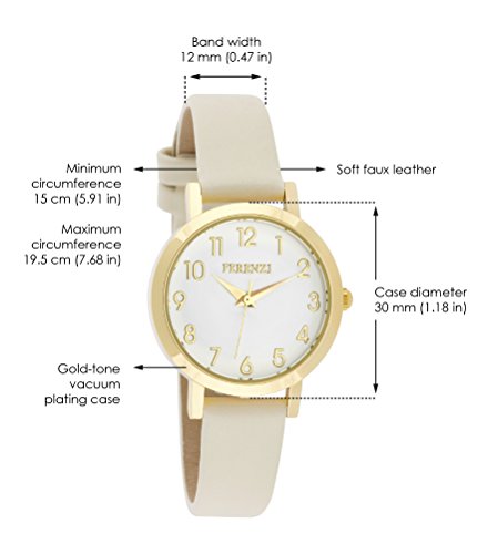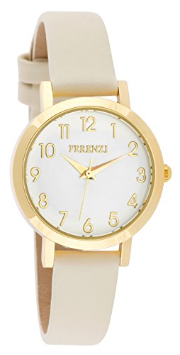 Women's Watches by Ferenzi - Classic Gold With Beige PU Leather Band Watch - Make Every Second Count - FZ16606