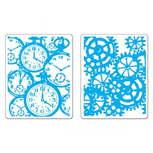 Sizzix Texture Fades Embossing Folders 2/PK - Pocket Watches & Steampunk Set by Tim Holtz