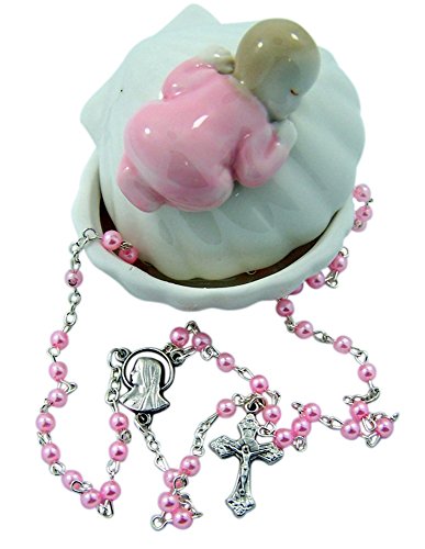 Baptism Porcelain Clam with Sleeping Baby Girl Figurine Keepsake Box With Rosary