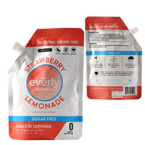 Everly Hydration Drink Mix, Strawberry Lemonade Flavored Powdered Drink Mix - 30 servings in Pouch - Sugar Free, Low Calorie, All Natural