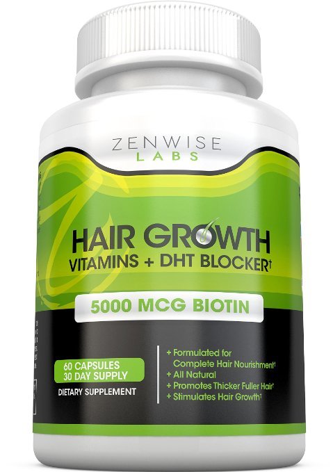 3]Hair Growth Vitamins Supplement - 5000mcg of Biotin & DHT Blocker for Hair Loss and Baldness - Contains Vitamins That Stimulate Hair Growth & Shine for Men and Women - 60 Vegetarian Pills