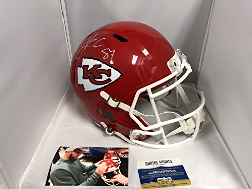 Travis Kelce Signed Autographed Kansas City Chiefs Full Size Speed Helmet Radtke COA & Hologram W/Photo From signing