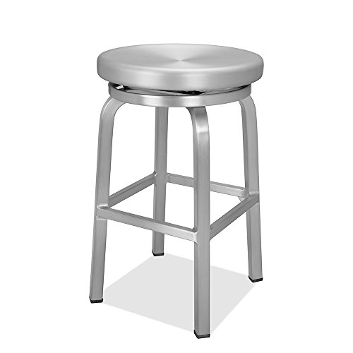 CHAIR DEPOTS Atlantic Aluminum Swivel Backless Counter Stool, Brushed Aluminum Finish