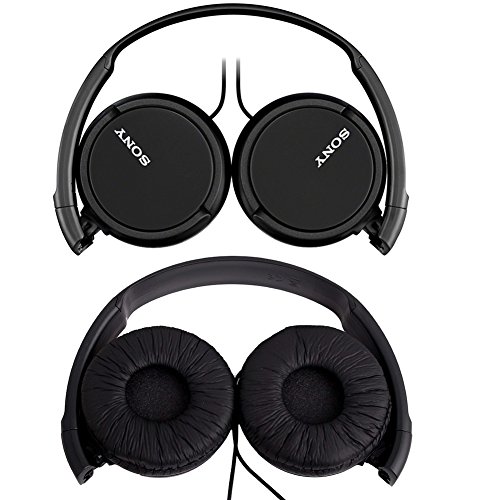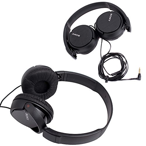 Sony MDRZX110AP ZX Series Extra Bass Smartphone Headset with Mic (Black) + 3.5mm Mini Plug to 1/4 inch Headphone Adapter & HeroFiber® Ultra Gentle Cleaning Cloth (2 pack)