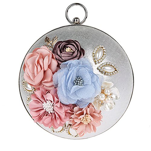 -. Title : Womens Flower Evening Bags and Clutches Wedding Party Beaded Pearls Handbags Round B3
