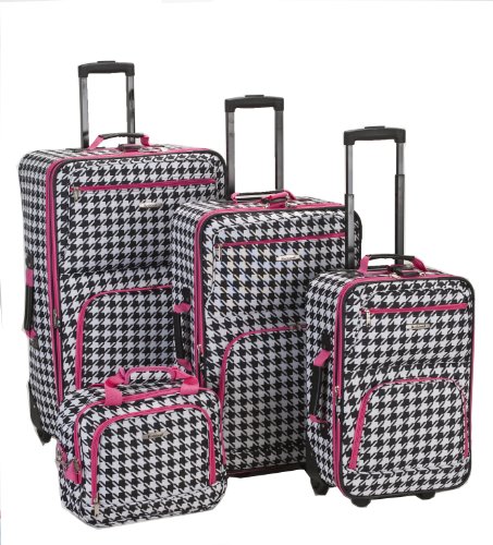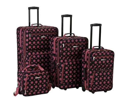 Rockland Luggage 4 Piece Luggage Set, Black/Pink Dot, One Size