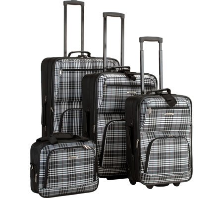 Rockland Luggage 4 Piece Luggage Set, Black Plaid, One Size