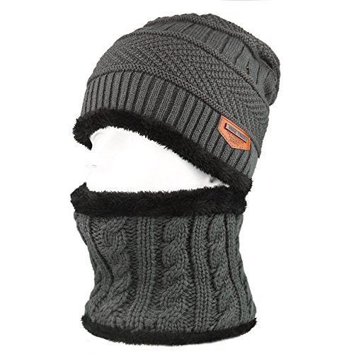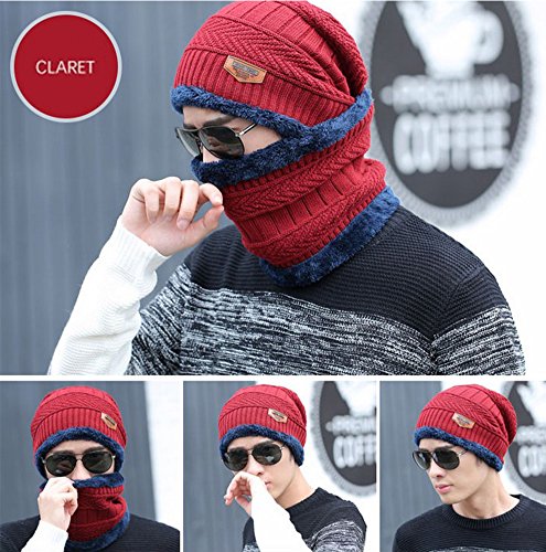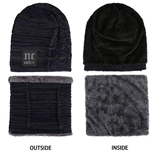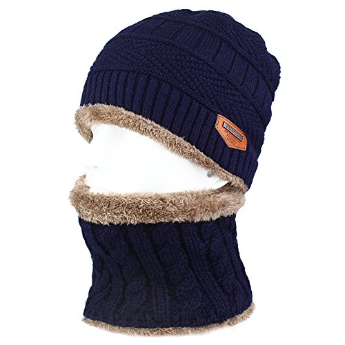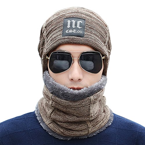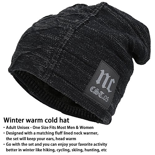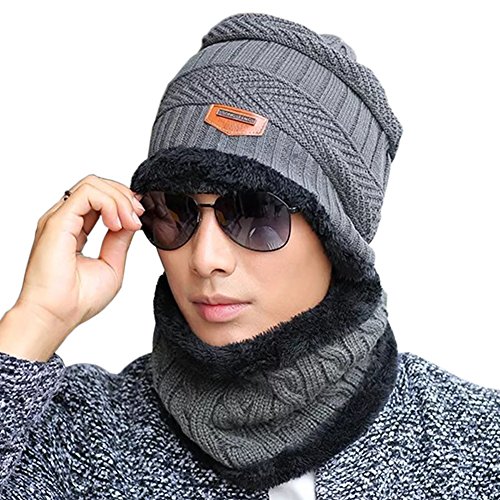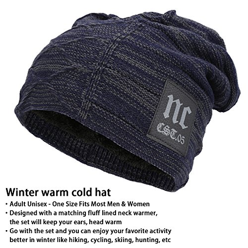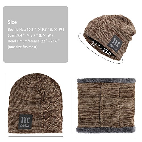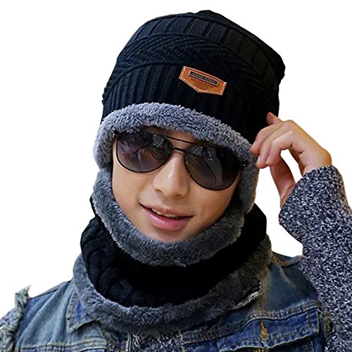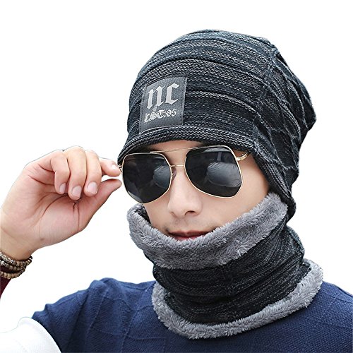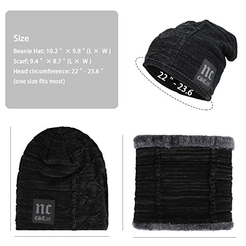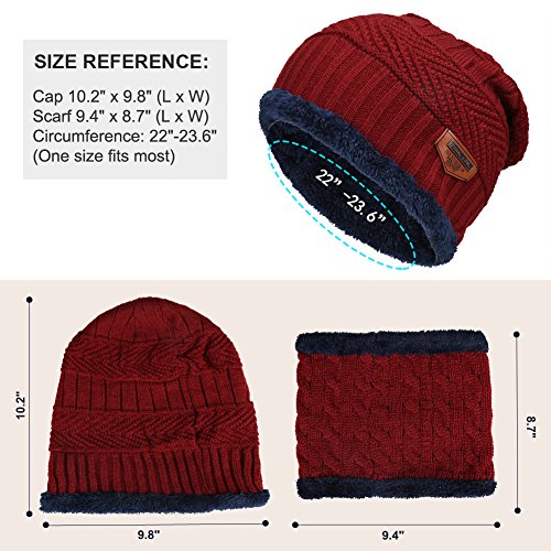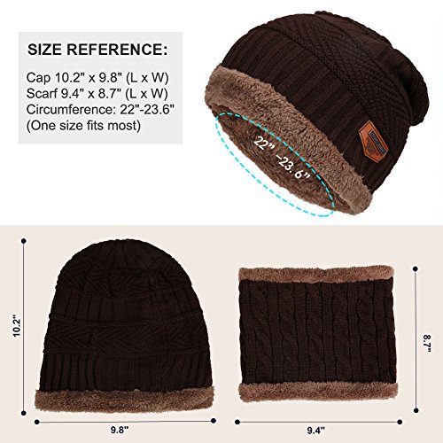 Feature: Material: Acrylic knit fleece lining Gender: male Season: autumn and winter Size: cap 10.2'*9.8'(L*W); scarf 9.4'*8.7'(L*W) Circumference: 22'-23.6'(one size fits most)