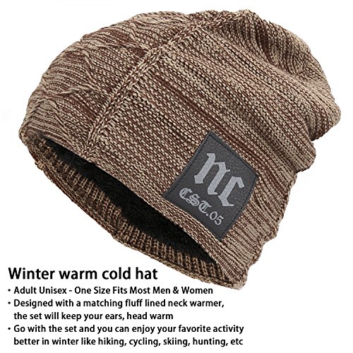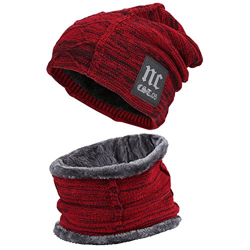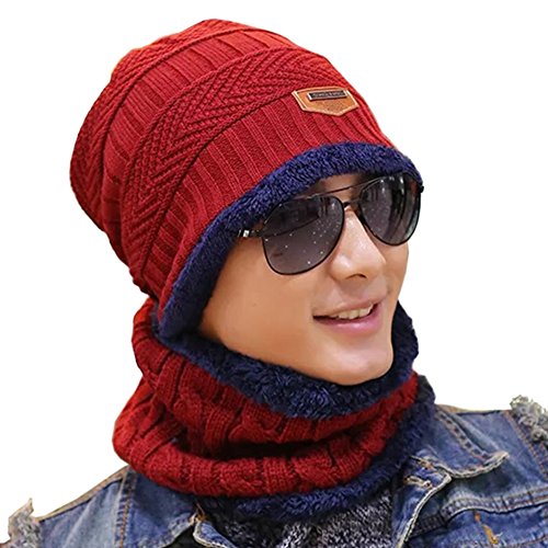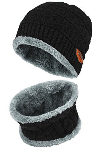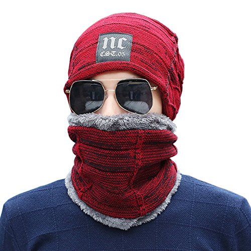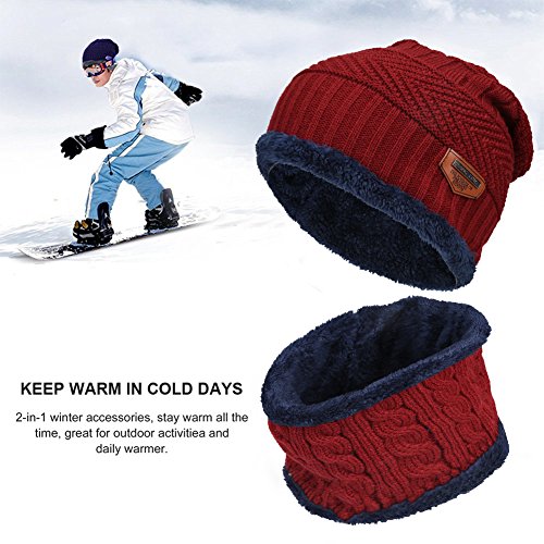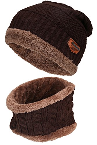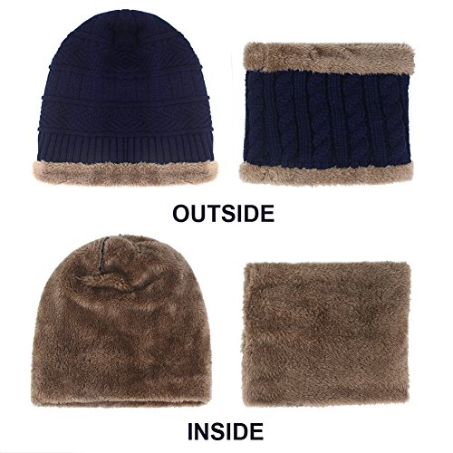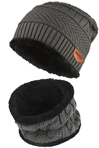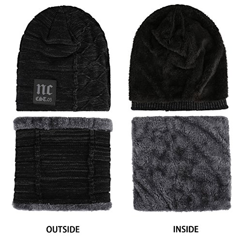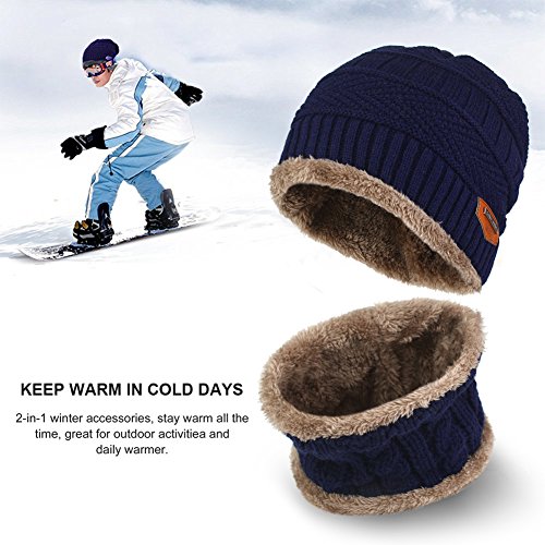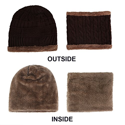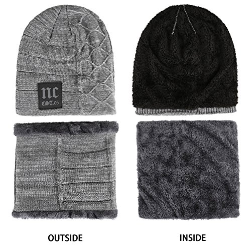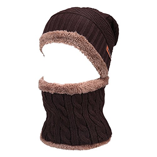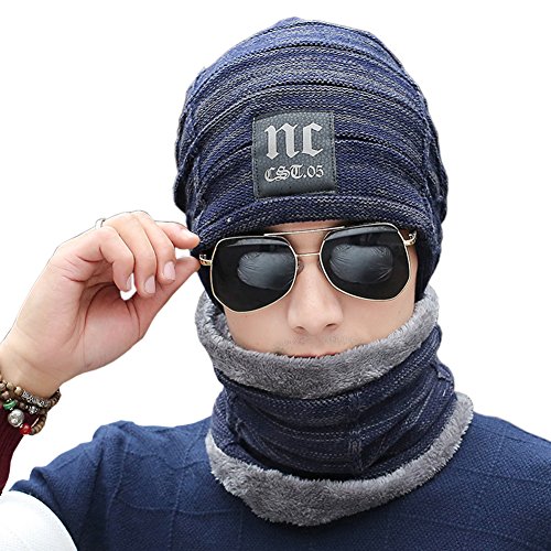 Feature: Material: Acrylic knit fleece lining Gender: male Season: autumn and winter Size: cap 10.2'*9.8'(L*W); scarf 9.4'*8.7'(L*W) Circumference: 22'-23.6'(one size fits most)