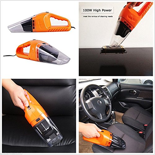 【EASY OPERATION】Easy to use car vacuum cleaner, just insert the plug into any DC 12-volt cigarette lighter sockets, then pushes switch forward to turn on and pull switch backward to turn off, 5 meters power cord support easier cleaning; in order to get the highest efficiency you should turn the engine on and go with proper attachment.