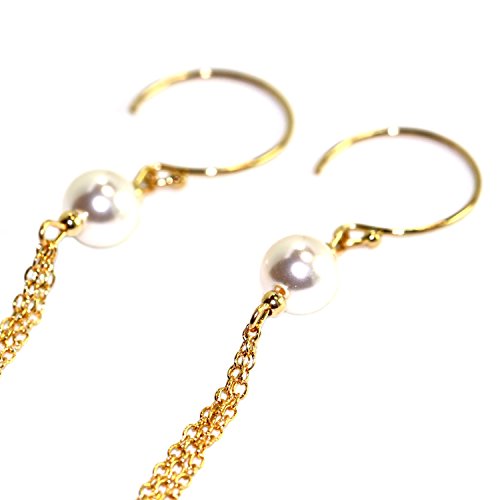 -. Title : Handmade 14-kt Gold-Filled  Brass multi strand chain earrings with Beads