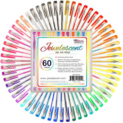 -. Binding : Office Product -. Brand : Us Art Supply -. Label : US Art Supply -. Manufacturer : US Art Supply -. ProductGroup : Office Product -. ProductTypeName : WRITING_INSTRUMENT -. Publisher : US Art Supply -. Studio : US Art Supply -. Title : US Art Supply® Jewelescent® 60 Color Gel Pen Set - Professional Artist Quality S Gel Ink Pens in Vibrant Colors - Classic, Glitter, Metallic, Neon, Pastel & Swirl Colors - 100% Satisfaction Guarantee