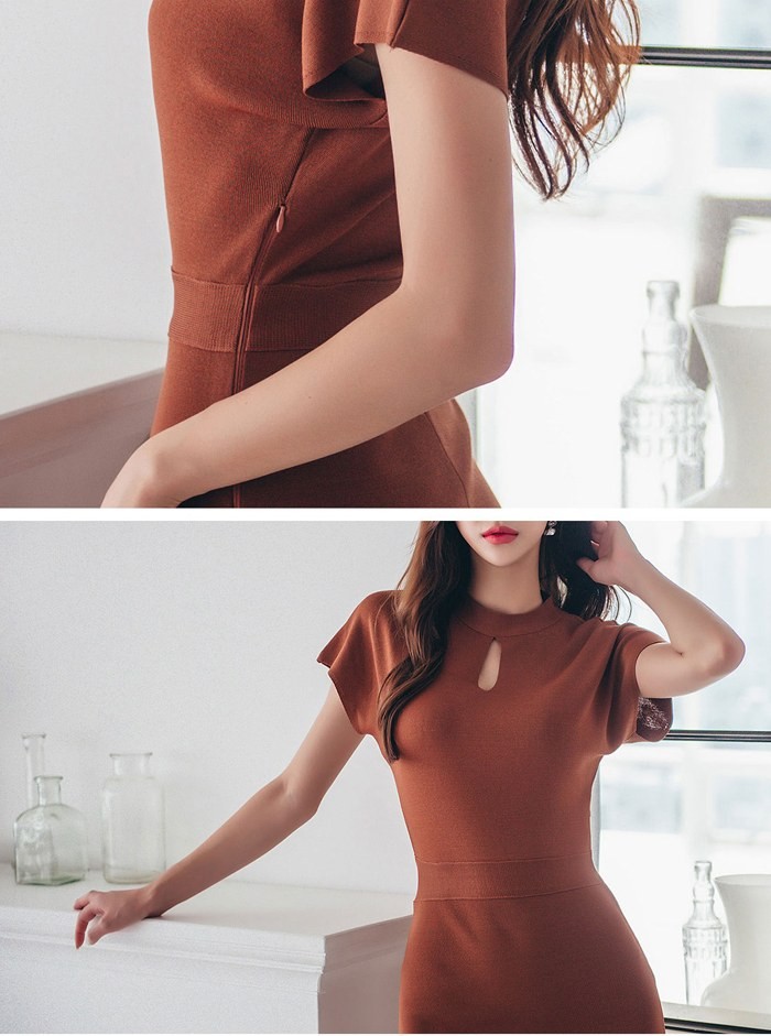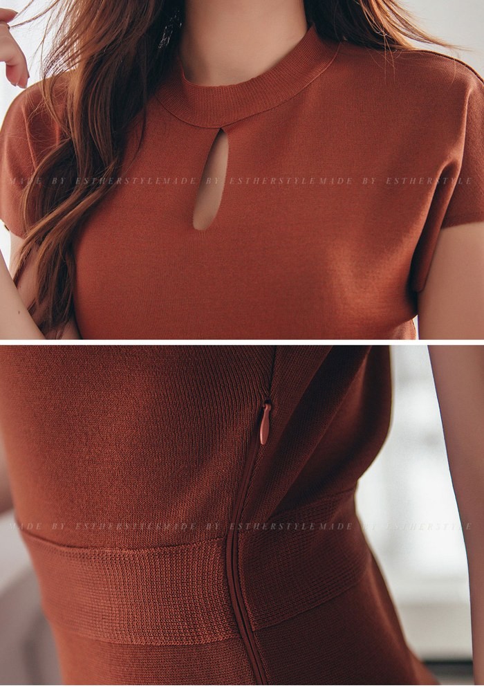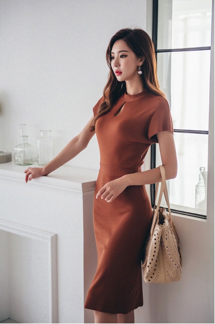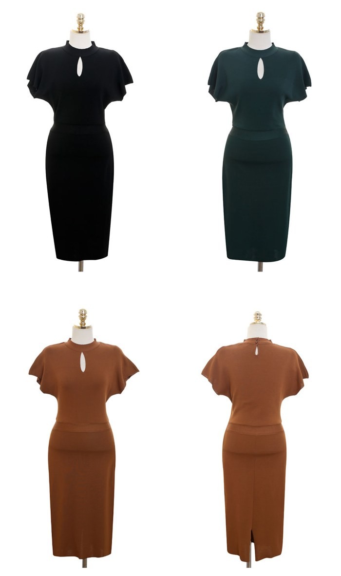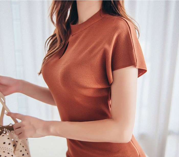 商品名:ワンピース 無地 半袖 膝丈