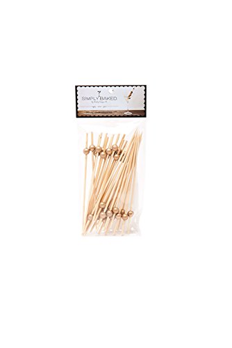 Simply Baked Large Appetizer & Cocktail Pick, Metallic Gold Ball on Natural Wood Pick, Disposable and Sturdy, Pack of 30, 6" long