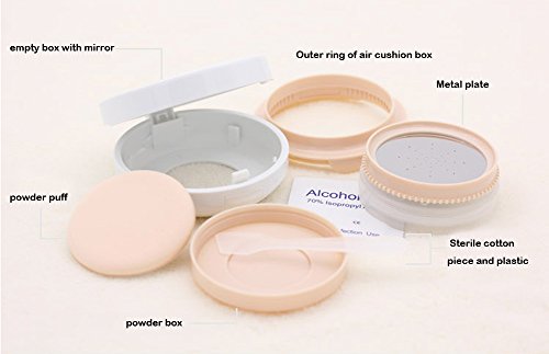 -. Feature : Material:ABS+ Stainless Steel+Glass ;Color:Black,Gold,White / Size:Size:1.1 in(Height)*2.5 in(Diameter) / Capacity: 15ml;1 pcs per order / Portable,lined sealed lid, prevent powder from spreading out.Ideal for travelling.Ideal for Powder, Make Up, Cosmetic, BB Cream,CC Cream,Blusher and so on. / The air cushion sponge make your makeup look more natural.