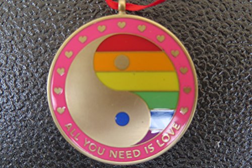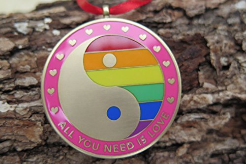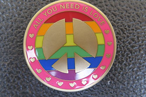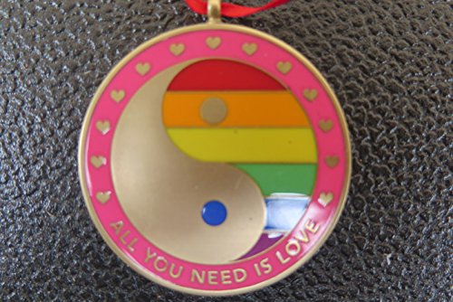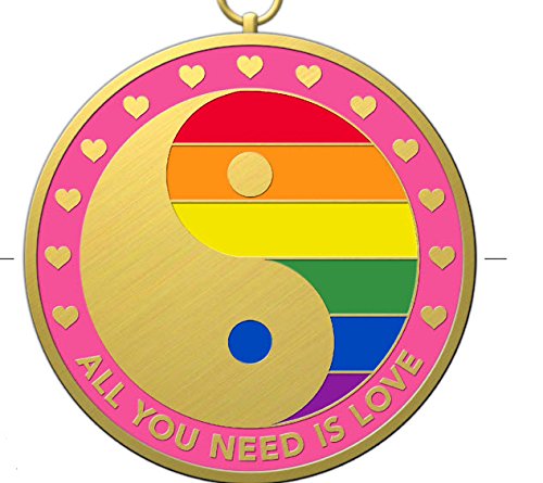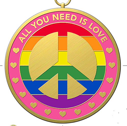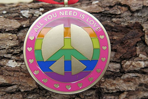 DKC-1602-B ALL YOU NEED IS LOVE Christmas Ornament Pendant Custom Hand Engraved Minted In Antique Brass 1.75" Diameter 1.8 oz MINT SERIES