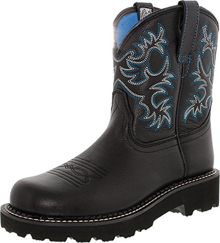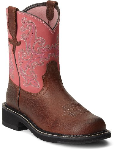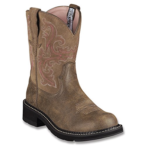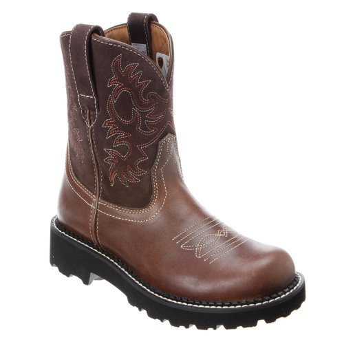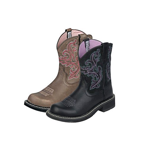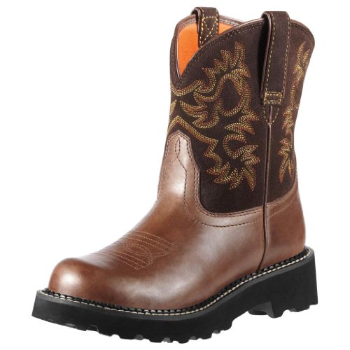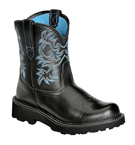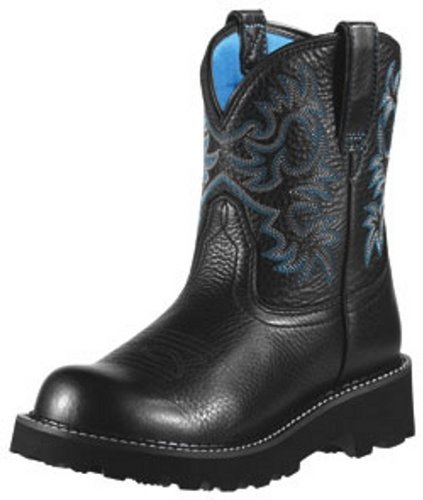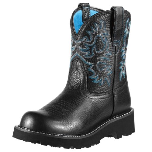 Show-stopping style The Fatbaby Ariat cowboy boot features a soft deertan leather foot topped with a matching 8" fancy stitched shaft. 1 1/2" heel on a lightweight, flexible blown rubber lug outsole. Not recommended for riding. Disclaimer: Boots come with either blue or white stitching.Feature