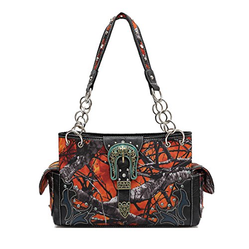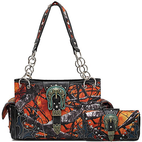 Western Style Concealed Carry Buckle Camouflage Country Purse Women Handbag Shoulder Bag Wallet Set Fire