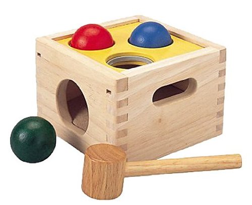 -. Feature : Ideal for hammering practice / The Balls Drop Down After Hammered And Roll Out The Side / There Are Three Balls Red Blue Green And A Wood Mallet / Improves The HandEye Coordination Aligning Slotting And Aiming / This Toy Is Made From All Natural Organic Recycled Rubber Wood