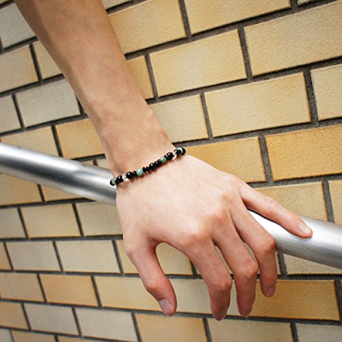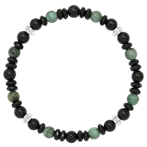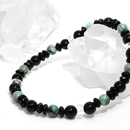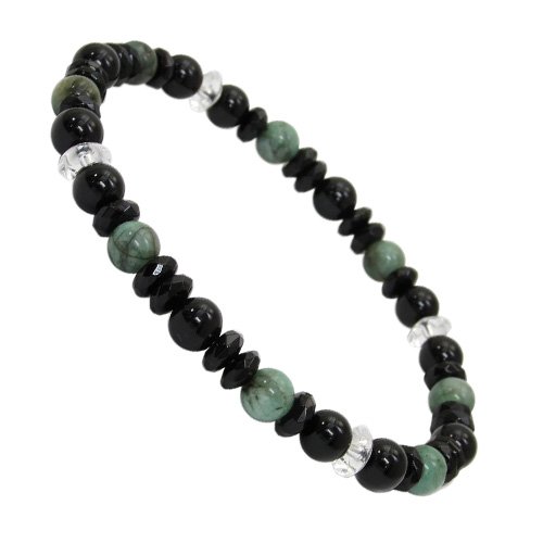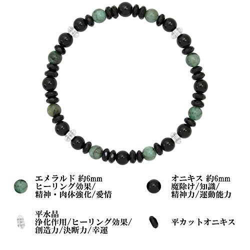 원본상품명: 新宿銀の? 6mm玉 精神力 魔除け ブラック グリ?ン エメラルド ブラックオニキス 水晶 ブレスレット 長さ約18cm~19cm (M~LLサイズ) 人? 天然石 パワ?スト?ン