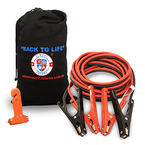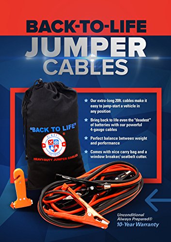 Jumper Cables 4 Gauge Extra Long (20 feet) w/ Carry Bag & Emergency Auto Escape Tool | Quality Battery Booster Cables w/ High Capacity (400 AMP), Tough Insulation and Alligator Clamps for Car, Truck