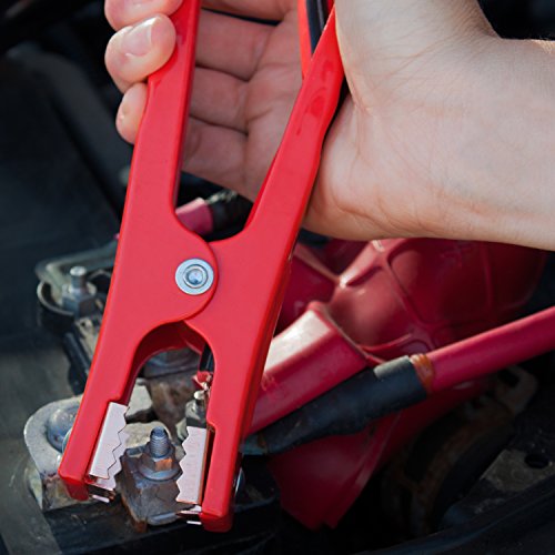 Easy-to-Open Alligator Clamps With A Vicious Grip: With a firm squeeze you can open these babies wide enough to grab even the most elusive battery connection and hold like a pit bull’s bite.