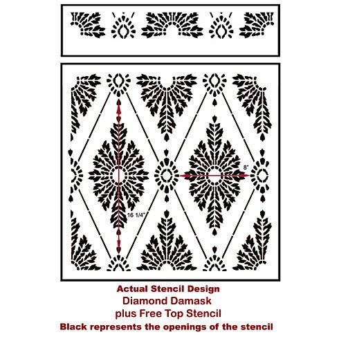 -. Title : Diamond Damask Stencil - Wallpaper stencils for DIY decor