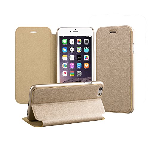 iPhone 6 Plus Case, E-Trends Elegant Series Synthetic Leather Folio Stand Flip Cover Case with Matte Finish for iPhone 6 Plus 5.5" (Plus Gold)