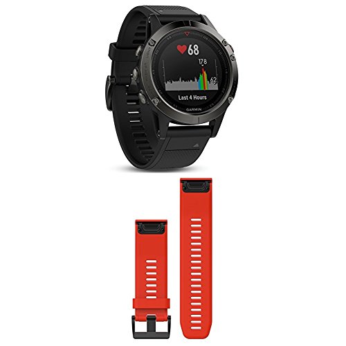Garmin Fenix 5 - Slate Gray with Black Band and 010-12517-02 Fenix 5X Quick fit 26 Watch Band -...