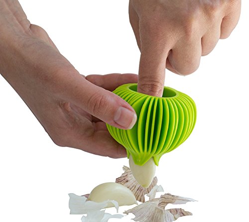 The Garlic Peeler removes skins from garlic cloves quickly and easily and keeps hands odor free
