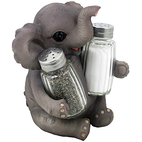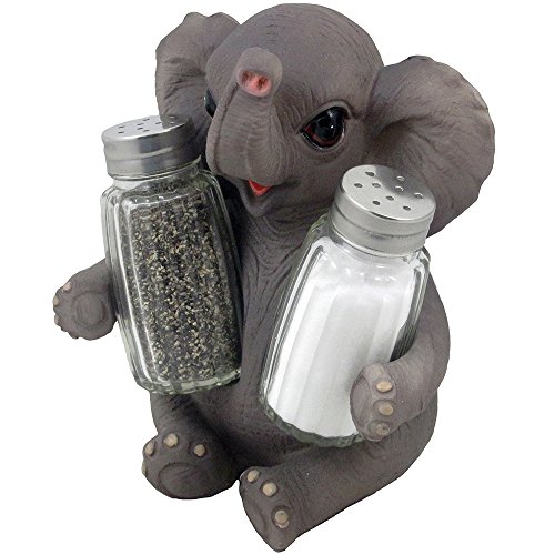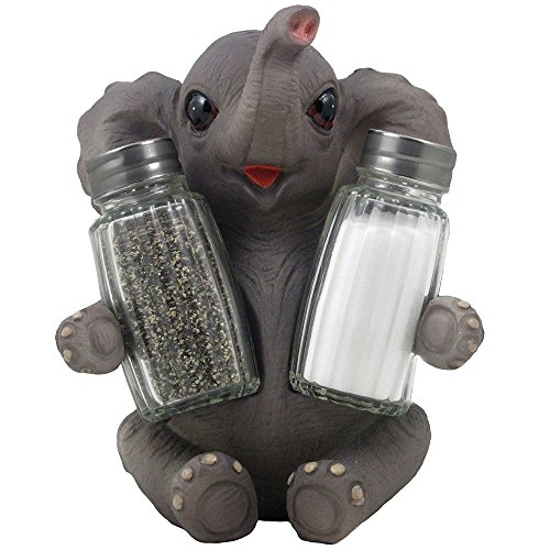 Decorative Lucky Baby Elephant Salt and Pepper Shaker Set with Holder Figurine for African Jungle Safari Kitchen Decor Statuettes & Sculptures Featuring Zoo Animals As Unique Collectible Gifts by Home-n-Gifts