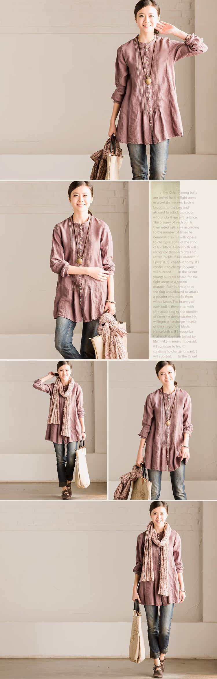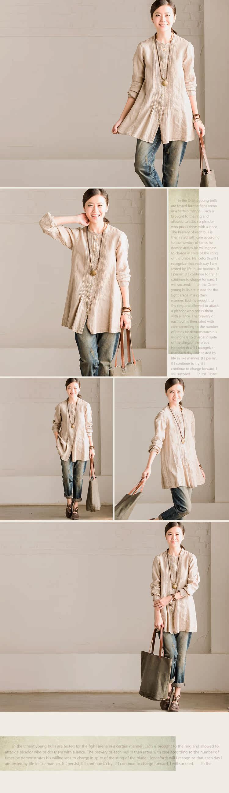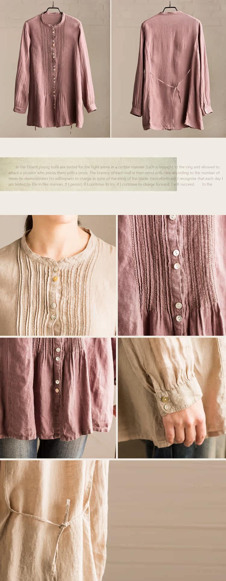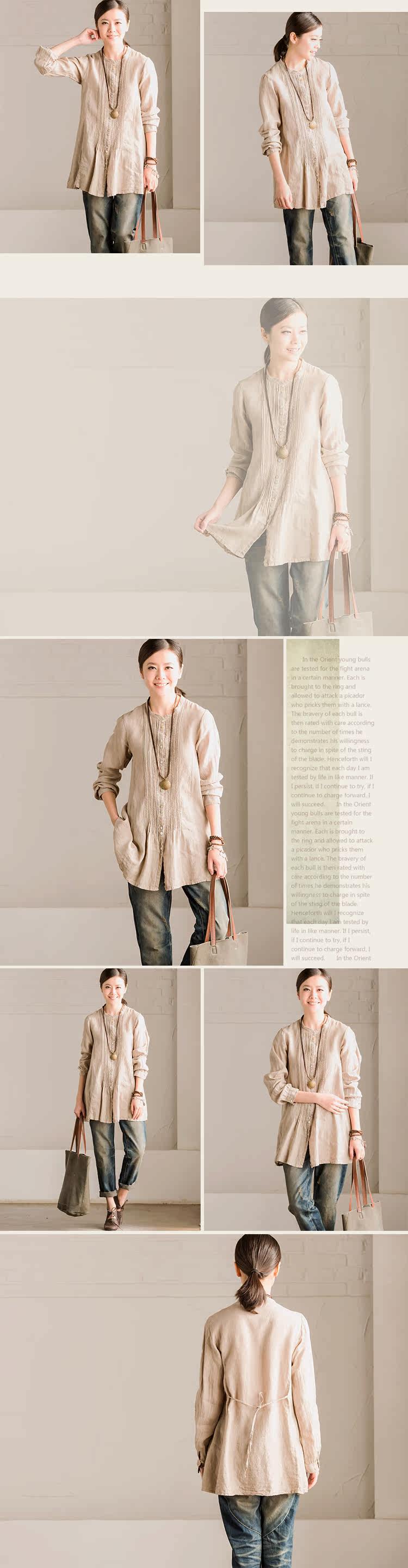 面料:亚麻+棉,手感舒适,无弹力,单件重190g,厚度常规,适宜春季穿~ |