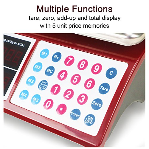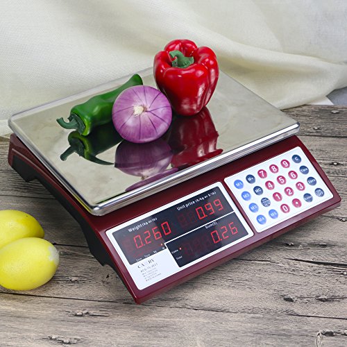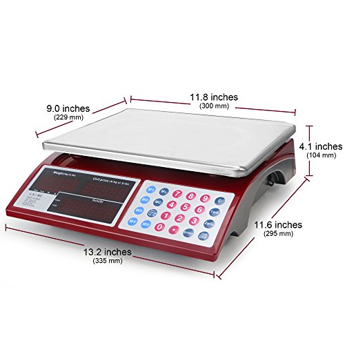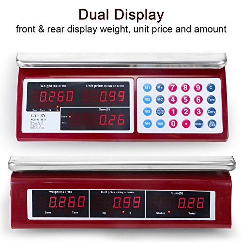 Camry Digital Commercial Price Scale 33lb / 15kg for Food Meat Fruit Produce with Dual Bright Red LED Display 15 Inches Platform Rechargeable Battery Included