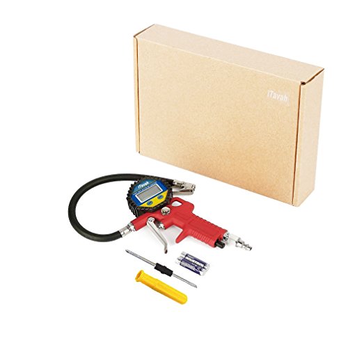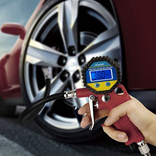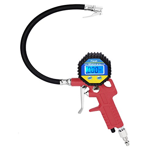 Digital Tire Pressure Gauge,iTavah Integrated Closed, Straight Lock-On Air Chuck, LCD Backlit Screen, Digital Tire Inflator with hose