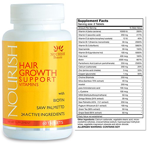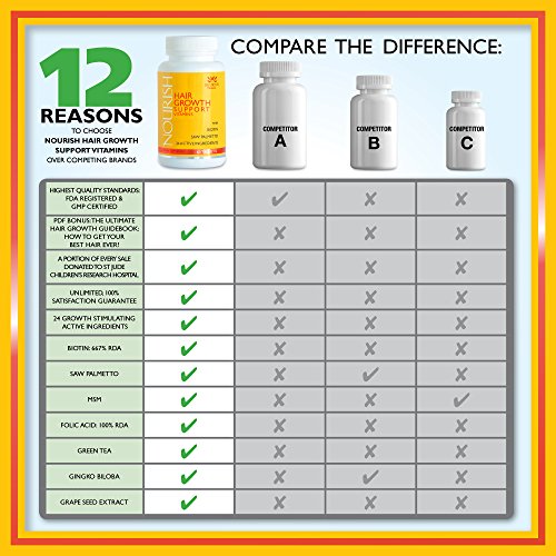 NOURISH Vitamins contain Biotin, Saw Palmetto, Folic Acid, MSM, Pantothenic Acid and 19 additional vitamins and herbs to naturally block DHT and aid alopecia and regrowth. Others don't compare to this power packed lineup!