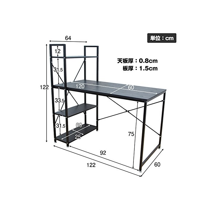 사이즈 폭:122cm (길이)깊이:60cm lak 높이:122cm 테이블 오름:75cm lak 부분을 제외하는 (책상이나 카운터의) 널찍하고 평평한 윗부분 사용 사이즈:95×60cm
