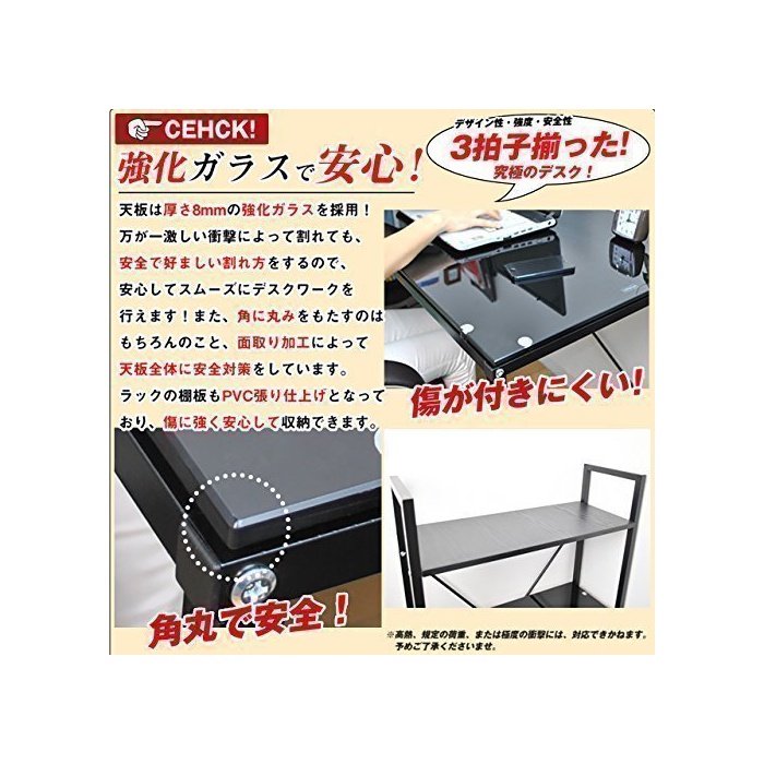 원본상품명: ラック付きガラス天板デスク【ガイアガラス】(dzs)
