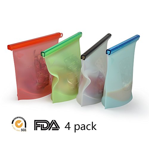 Reusable Food Bags, Fscool Reusable Silicone Fresh Food Preservation Bag Airtight Seal Food Storage Container Versatile Cooking Bag Kitchen Cooking Utensil (4 Packs)