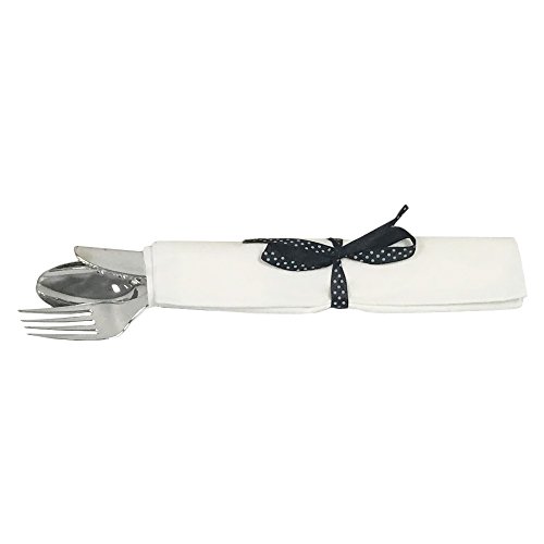 Restaurantware 100 Count box Wrapped Argento Cutlery Set in Premium 7.3" White Napkin with Black Polka Dot Ribbon, Large, Silver