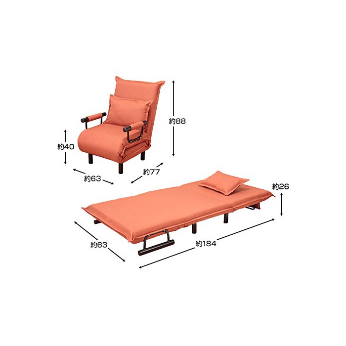 ●사이즈/약폭63×길이77-184×높이40-88cm 고, 좌면높음:약40cm,상면높음:약26cm,쿠션 사이즈:55×37cm