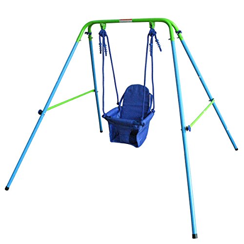 This toddler swing is Great for outdoors and indoor, kids can enjoy it all year round! Frame and Seat fold for easy storage and transport. supports toddlers up to 50 pounds. Recommended for toddlers 9 to 36 months old.