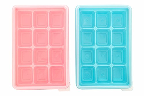 MONSTA Living Baby Food Freezer Trays 12 Cubes Tray BPA Free - 2 Piece Set (Blue and Pink)
