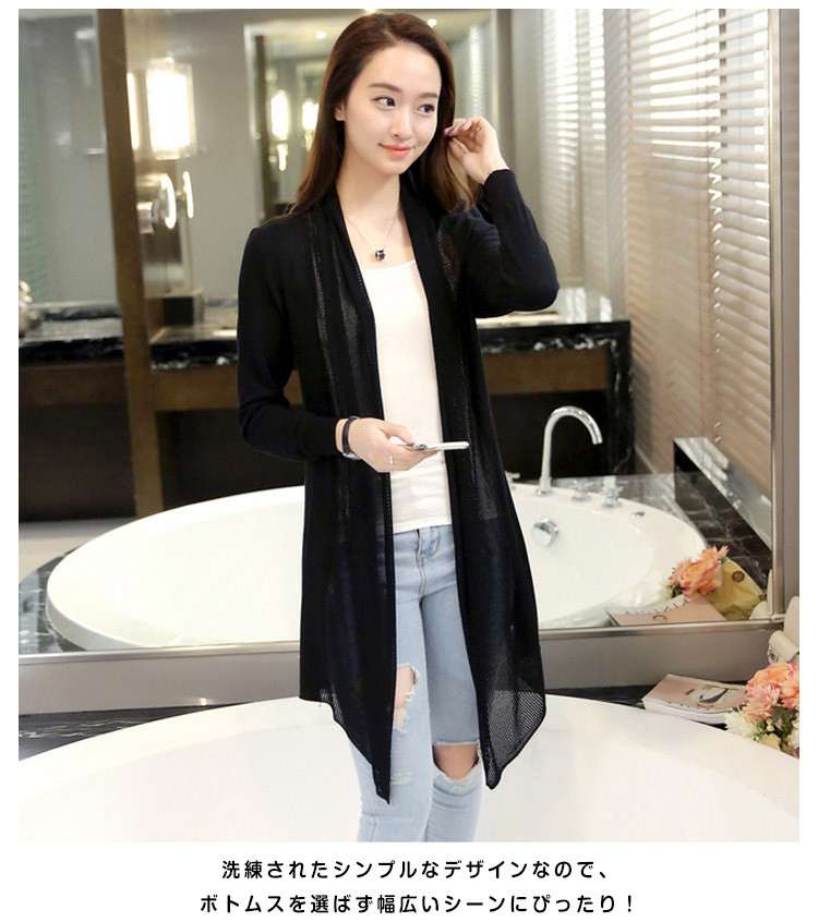| 大人の女性にぴったり!ストンと落ちるシルエットで、洗練された大人顔スタイルに仕上げてくれるカーディガン。洗練されたシンプルなデザインなので、ボトムスを選ばず幅広いシーンにぴったり!さっと羽織るだけで抜け感をプラスし機能性も抜群のカーデは、日常からお出かけまで大活躍間違いなしのアイテムです! | |