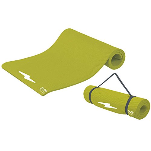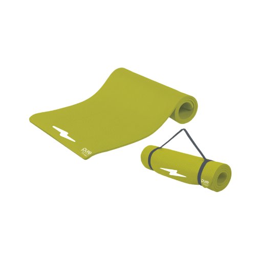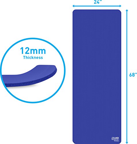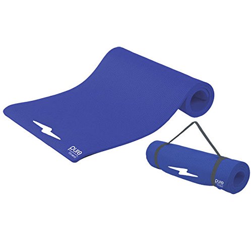 Product Description The Pure Fitness Deluxe Fitness Mat makes any floor workout more comfortable, made from.5-Inch thick foam that cushions your body and makes even the hardest floors more friendly. The mat comes with a handy carry strap for easy transport to the gym or fitness class. 0