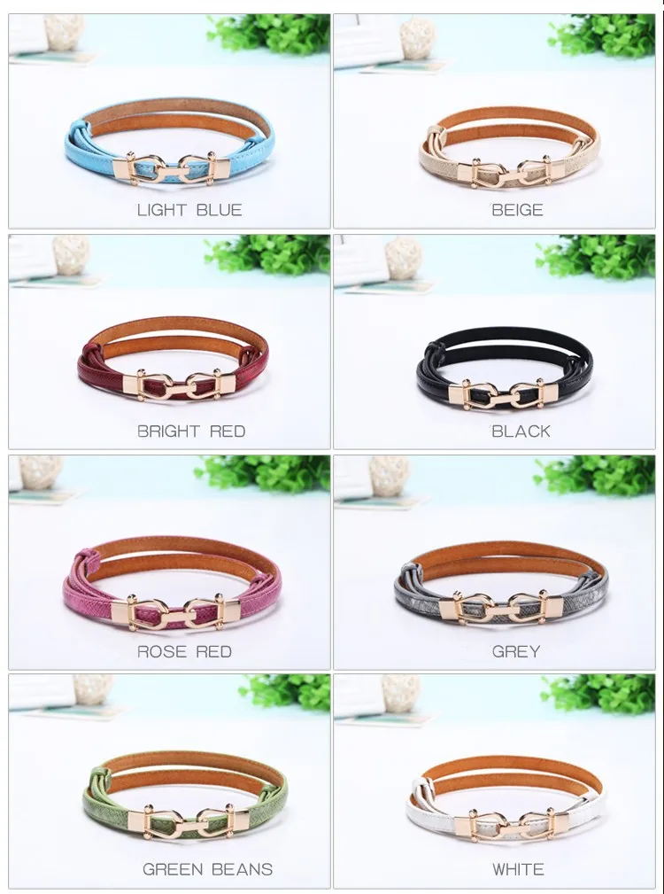 Thin Belt color:Grey,Green,Blue,Rice,Red,White,Rose Red,Brown,Black
