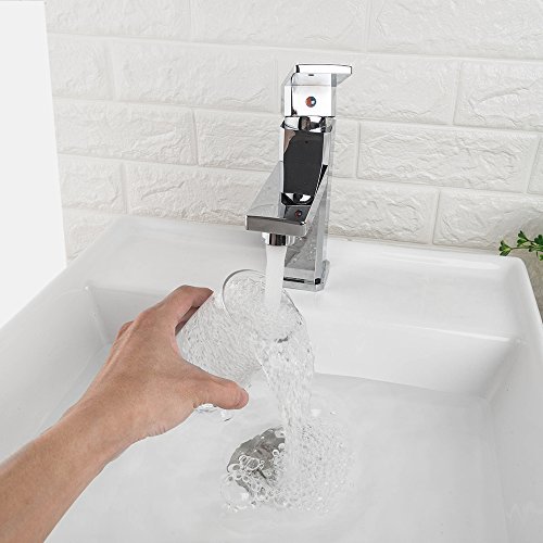 LORDEAR SLC16025 Best Square Single Hole One Handle Tub Lavatory Waterfall Bathroom Vessel Sink Faucet, Chrome Finish Modern Bathroom Sink Faucet